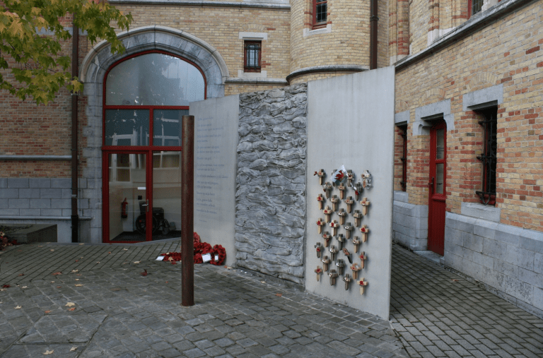 The first historical site was one of the grimmest – the condemned cell for soldiers about to be shot for cowardice. It’s an undistinguished stone room, tucked next to the Town Hall, no bigger than most people’s bedrooms. There is some graffiti on the walls, the odd crucifix or name: for some soldiers, it was just the cell for drunkenness. Those suffering the severest penalty – their paperwork now displayed as superior officers countersigned the death penalty – “I see no reason to change this verdict” – had maybe ten metres to walk to a steel post in the neighbouring courtyard. There’s a good site with further information here.