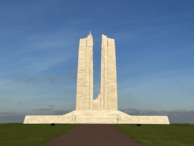 The Germans were slow to realise the success of their new tactic, enabling French and Canadian forces to come forward to fill the gap. In the 48 crucial hours that they held the line, 6,035 Canadians – or one man in every three who went into battle – became casualties; of that number, approximately 2,000 (or one man in every nine) were killed. The parkland around the statue features Canadian shrubs, one of which – a low green bush – ghoulishly mimics the look of chlorine gas creeping over the ground.