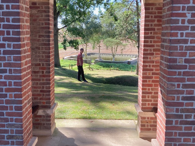 The episode has attained mythic proportions, but it certainly happened, and is commemorated by a bronze statue in the town square of the nearest village, and a FIFA sponsored stone memorial, signed by Michel Platini, five minutes away at the actual field. A couple of French hikers obligingly took our photo. There remain some trenchworks at the memorial site, and a look around the local landscape shows cemeteries on both sides. It seems pretty clear that, after the Christmas truce, the armies on both sides reverted to business as usual.